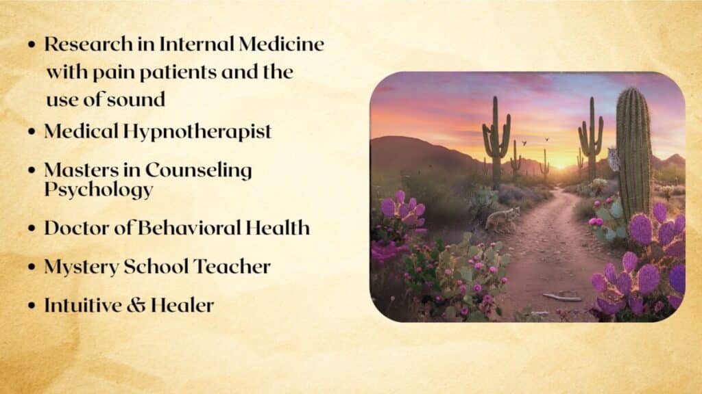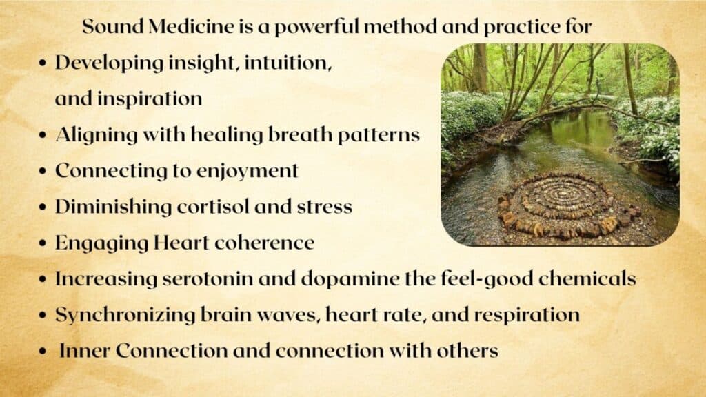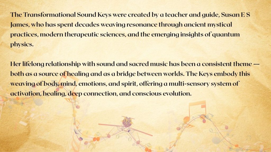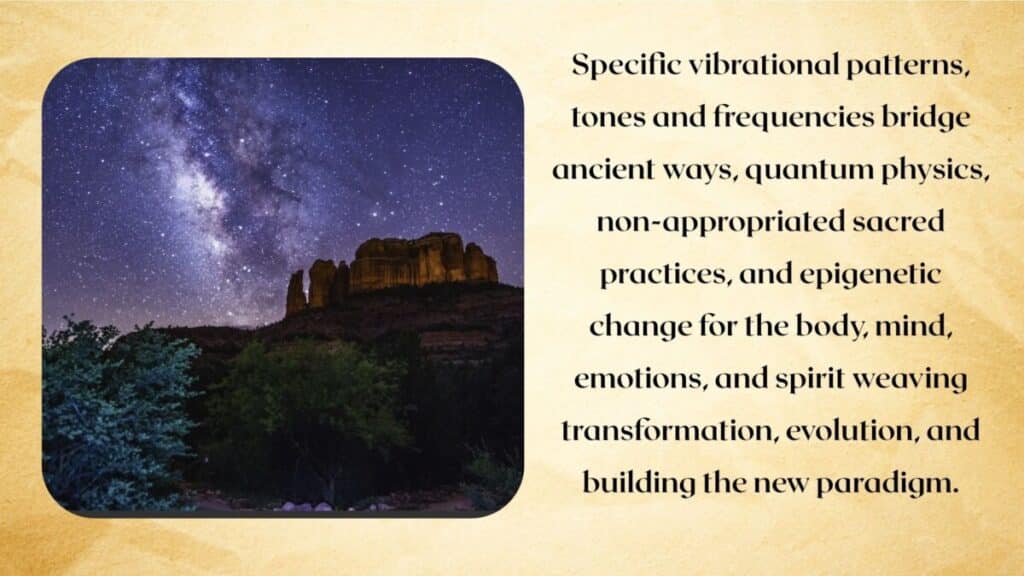 I am a song carrier. That means I receive sacred ceremony and song- chants as patterns and vibrations of Sound Medicine that include the Harmonic Sound Keys.